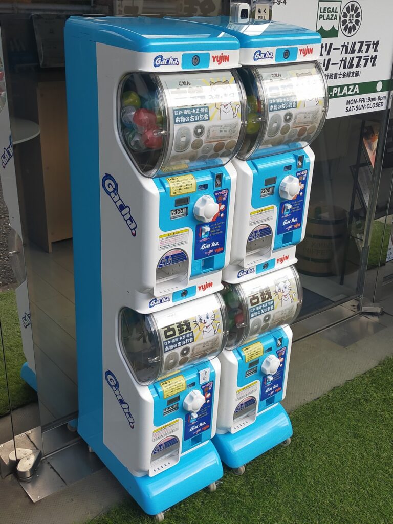 弊社の入り口付近に「古銭ガチャ」と「鉱物ガチャ」を設置しております。「不動産会社になぜガチャ?」と思われるかもしれませんが、弊社はリユース業を祖業とする不動産会社であり、古銭や鉱物は買取品目の一つでもあるからです。ガチャそのものは様々な場所に設置されておりますが、弊社オリジナルキャラクターが描かれた古銭ガチャや鉱物ガチャはここにしかありません。
